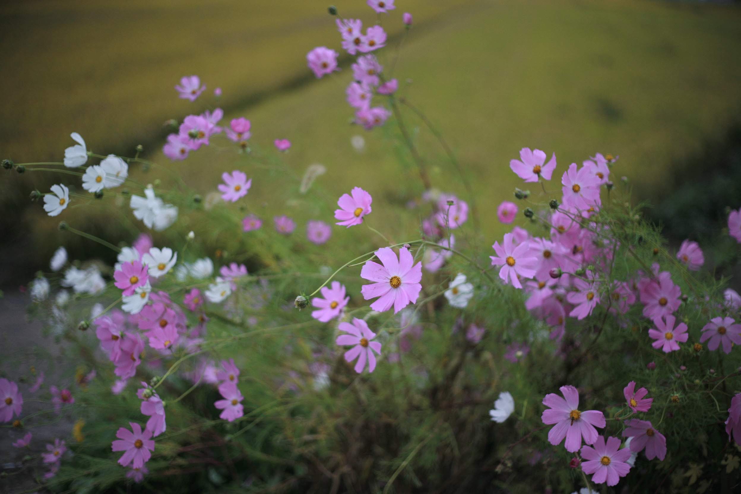 스마트폰에 저장해간 메타세쿼이아 길이 어디쯤이냐 하고 여쭙자, 둑길을 따라 걸어가면 된다고 친절하게 가르쳐 주신다. 둑길이 나왔다. 둑길 옆으로 코스모스와 억새가 가을 바람에 하늘거린다. 같은 코스모스여도 시골 풍경 속의 코스모스와 시내의 코스모스는 다른 느낌을 줬다. 찬바람 속에서 하늘거리는 코스모스!